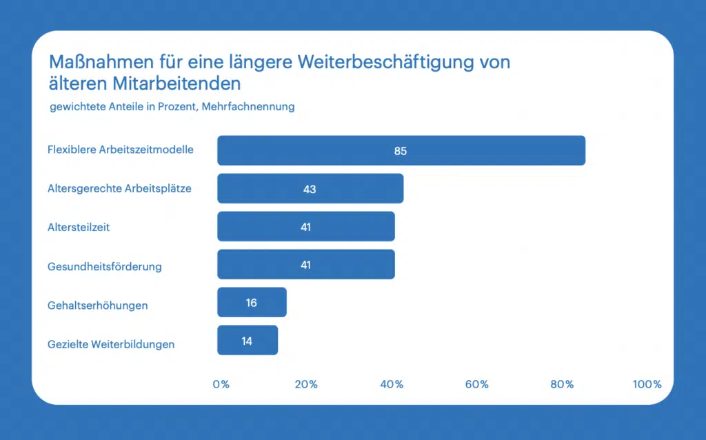 Unternehmen stehen somit vor der Aufgabe, sich anzupassen, um die vielfältigen Fähigkeiten und Erfahrungen verschiedener Altersgruppen optimal zu nutzen und ihre Belegschaft langfristig zu binden. Dazu bedarf es einer strategischer Neuausrichtung und gezielter Maßnahmen.